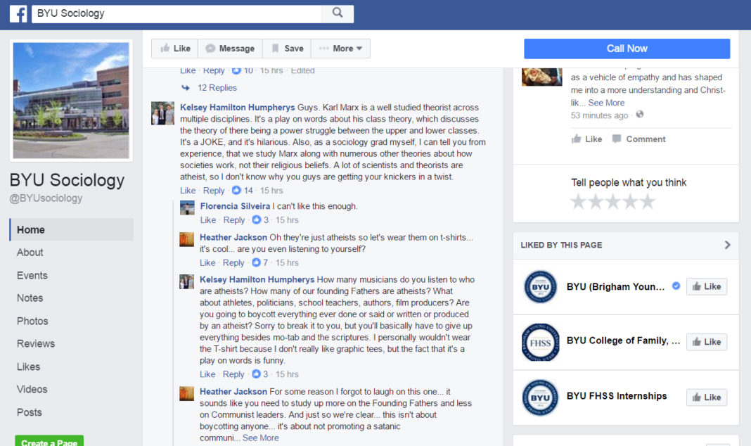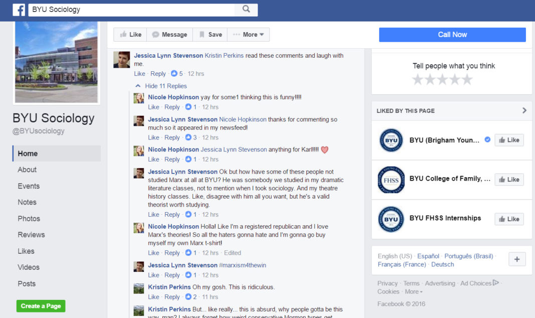Comments left below the post revealed that many BYU students, because of the influence of the BYU Sociology Department, support Marx and some of his ideologies.